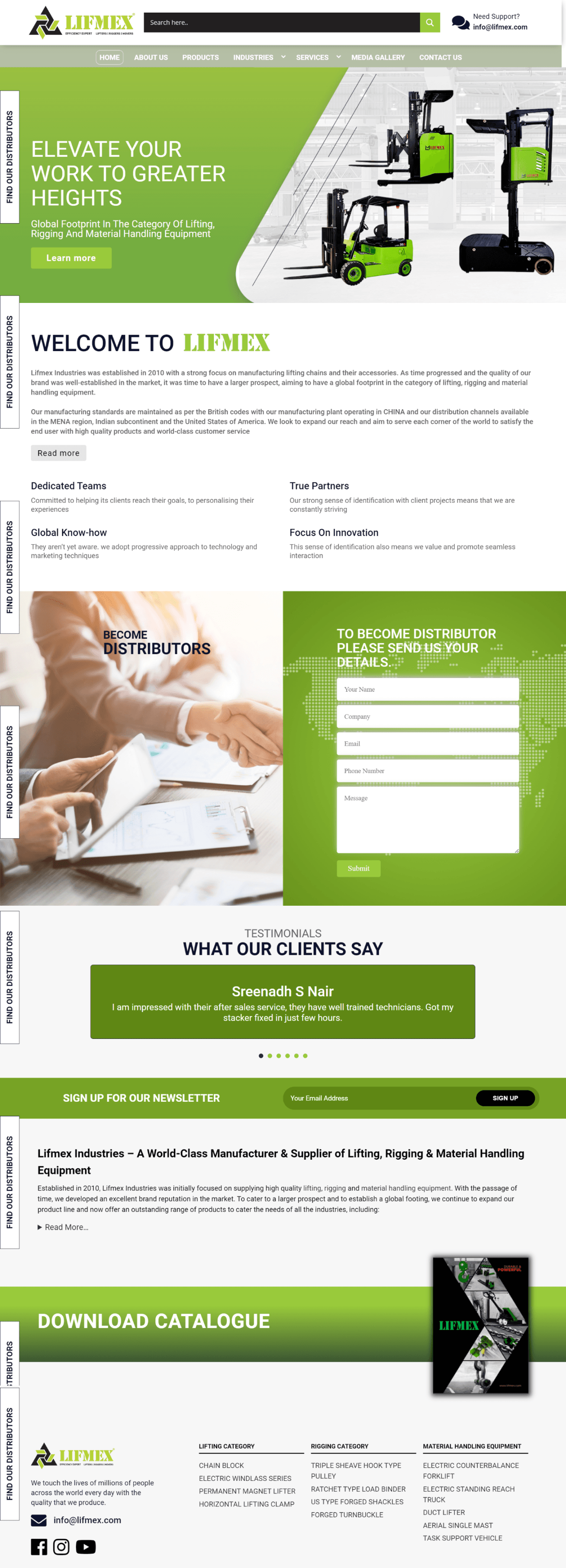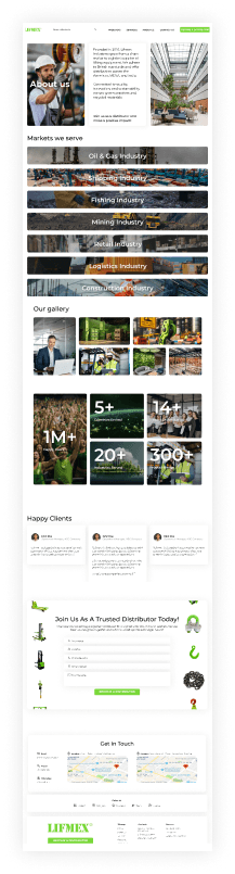 LIFMEX Industries, a leading B2B company specializing in material handling, lifting, and rigging equipment, approached Makreate Design Services to revamp their website with a focus on conversion rate optimization (CRO). I was responsible for redesigning their entire site, making the navigation more user-friendly and streamlining the product segmentation to help potential distributors easily find what they needed. By customizing the distributor journey to match the specific needs of different businesses, we were able to boost the conversion rate and deliver a seamless experience. The primary goal was to encourage visitors to fill out the form and become distributors for LIFMEX, so we focused on creating a design that would build trust and motivate them to take that step.